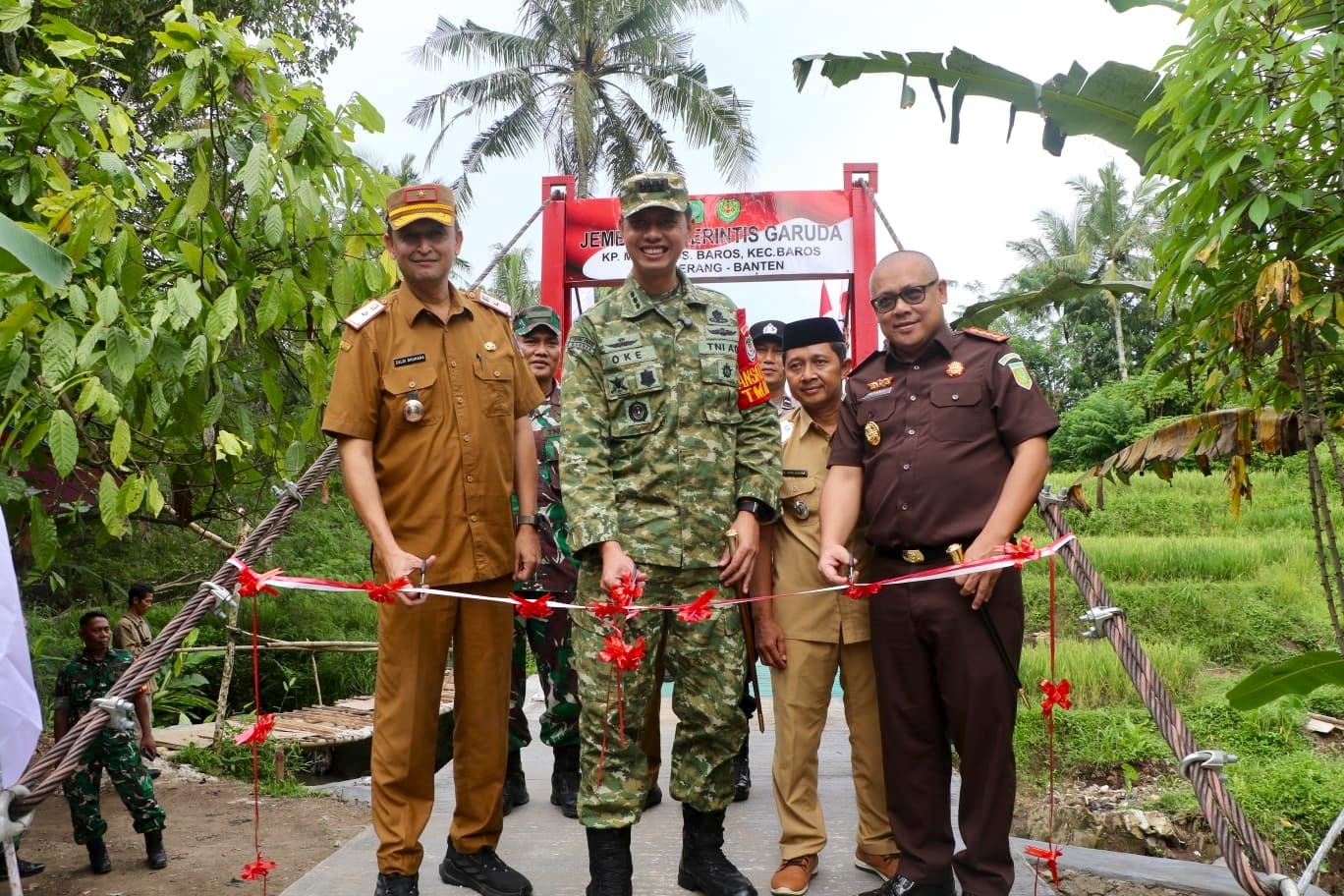 dibangun tni ad, jembatan garuda di kampung mayak baros diresmikan